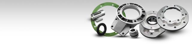 Dele og bøsninger til Bonfiglioli snekkegear W-gear og VF-gear (aksler, flanger, fødder, dæksler og momentarme samt gearhuse, tætningsringe og pakninger).